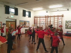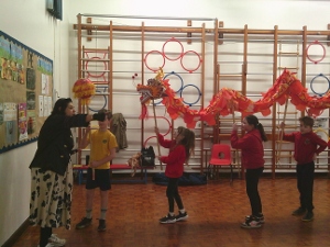 We learnt about the Chinese celebration: Luna New Year. We learnt how to do traditional Chinese dancing: dragon, fans and parasoles.