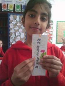 We learnt that the Chinese alphabet is made up of symbols and we made bookmarks.