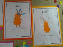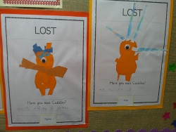 In literacy we have been reading ‘Toys in space’. In the story, Hoctopize loses his favourite teddy called Cuddles so we made missing posters to help the Hoctopize find him. We have also written party invitations for a party to cheer up Hoctopize