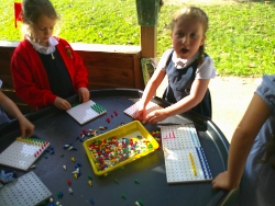 The weather has been lovely this term so we have been able to do some outdoor learning. We have made ourselves using natural resources, collected leaves to thread, been on autumn scavenger hunts and made animal pictures using things we have collected from our outside environment.