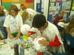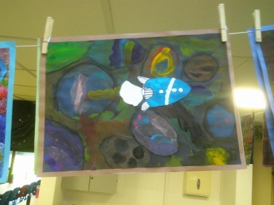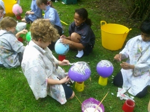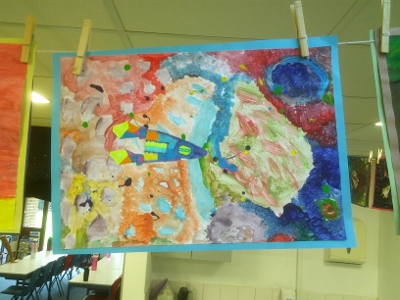 Our first writing journey for term 1 was a description of a planet. They created their own planet using papier Mache, painted them and thought about the features of this planet. They wrote their descriptions, which were amazing, using skills such as ambitious adjectives, verbs and adverbs and using prepositions (under, next, beyond) to start their sentences.