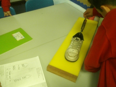 We have conducted a few science experiments tis term including gravity, air resistance and friction. For their friction experiment, they used Newton metres and different types of surface to test which material is best for footwear.
