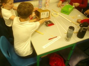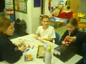 In DT, the children researched, planned and created their own Moon buggies. They used wood, cardboard and plastic to create the base as well as using hot glue guns and saws to make these. They also made satellites, aerials and tool boxed as part of their buggies.
