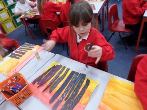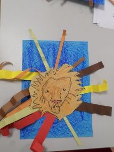 Finally, we made lion pictures using a variety of skills and techniques. We used pencil to draw accurate lion faces. We then explored the use of oil pastels to create patterns and texture in our drawing. Finally, we learnt how to cut and fold accurately in different ways to create the lion’s shaggy mane.