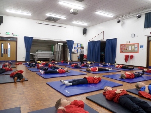 In PE we have been doing yoga. We have also been throwing and catching with balls and beanbags. We have learnt different ways to throw and catch.