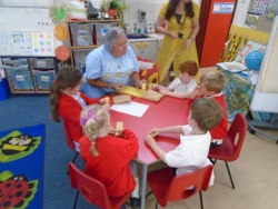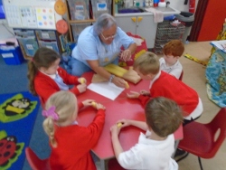 As we continued to look for answers to our question ‘What lives in my garden?’ we looked closely at a number of lifecycles and were amazed about the work Bees and other pollinators do and the way they are crucial in ensuring we have plenty of fruits, vegetables, flowers and plants. We were lucky enough to have a visit from Michelle, a beekeeper, who told us loads of facts about bees. We looked at a real beehive, tried on a beekeeper's suit and hat and made beeswax candles.